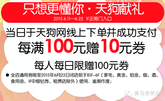 2015年6月11日至6月14日期间,超市当日单张发票实交金额满68元,百货当日单张发票实交金额满198元,黄金珠宝单日单张发票实交金额满398元,即可赠送刮刮卡一张。(单张发票仅可参加一次)