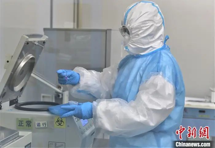 检测员在病毒中提取的核酸样本,上机后很快就可以呈现病毒核酸的特性。中新社记者 韩苏原 摄