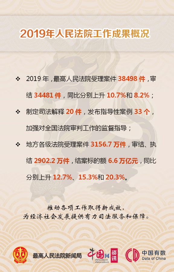 5月25日,最高人民法院院长周强在十三届全国人大三次会议上作2020年最高人民法院工作报告。周强院长在报告中回顾了2019年的成绩,最高人民法院坚持服务大局、司法为民、公正司法,推动各项工作取得新成效,为经济社会发展提供有力司法服务和保障!《中国有数》带您聚焦九个亮点成绩。