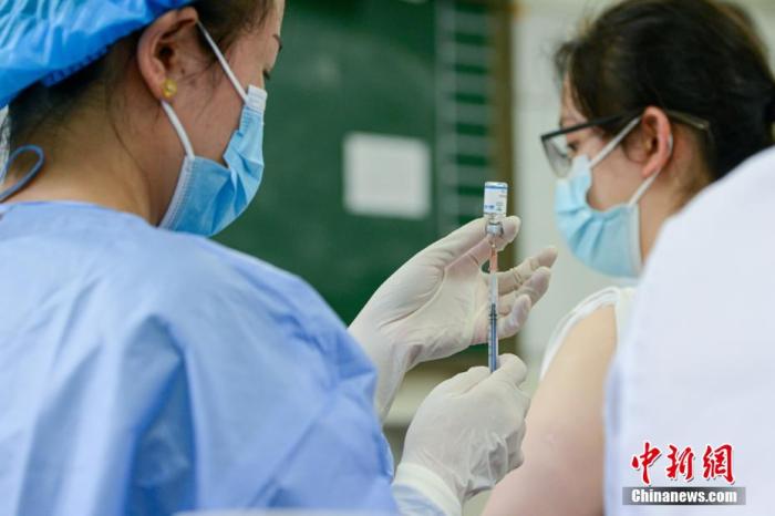 资料图:医护人员为学生接种疫苗。何蓬磊 摄