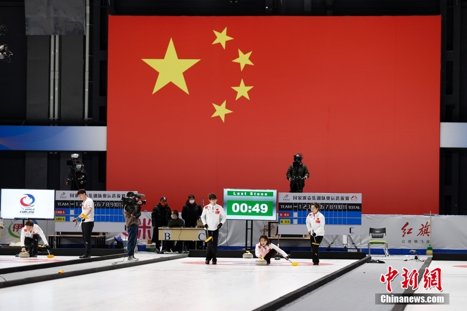 图为冰壶国家集训队运动员在奥运选拔赛中。中新社记者 韩海丹 摄