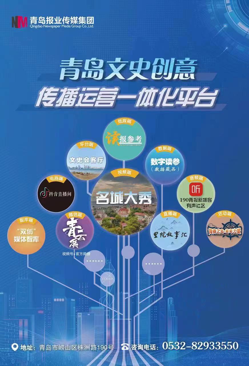 青报文史1+9融媒传播矩阵隶属于青岛报业传媒集团读报参考有限公司,横跨期刊融媒、智库媒体、音频播报,视频传播、定制服务、数字文史等诸多领域,重构媒体格局,重新定义媒体服务模式。矩阵包括名城大秀(文史创意传播平台)和190青报新播客、青报青云展视频号、抖音直播、青年音乐节、文史会客厅、数字读参、媒体智库等,全力打造山东半岛乃至中国北方文史文创文旅传播运营新高地。