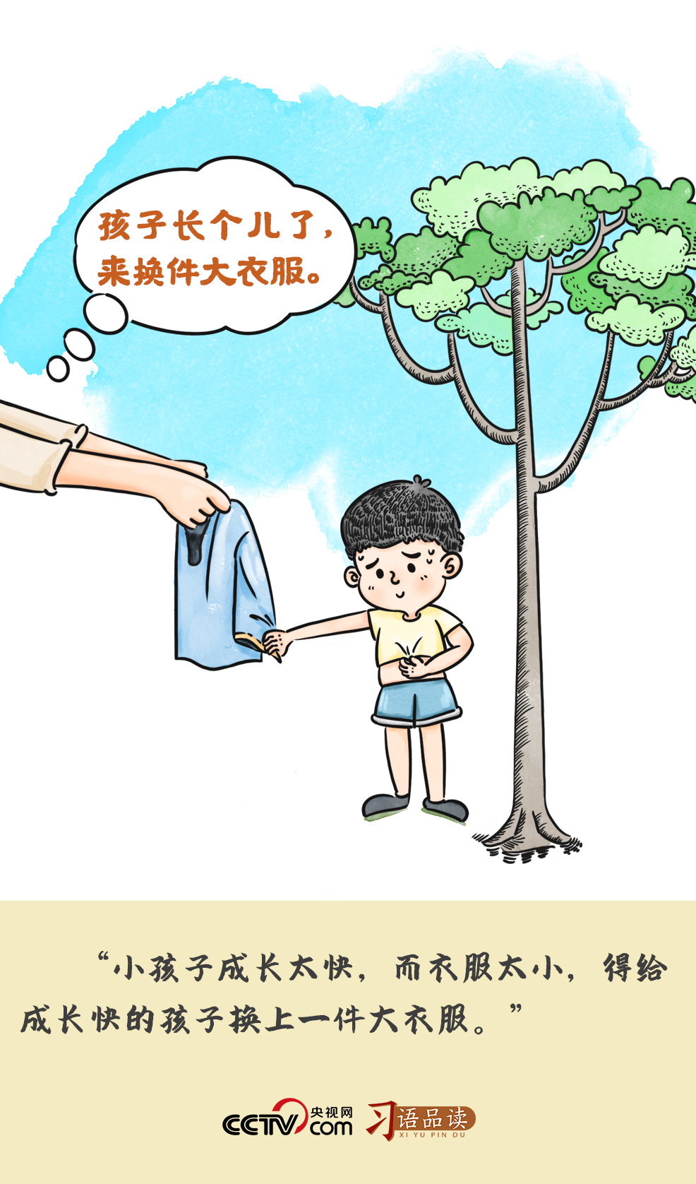 善用妙喻,是习近平语言风格的重要特点。衣服小了,不仅穿着不舒服,还会影响生长发育。正长身体的孩子只有换上大衣服,不被衣服束缚,才能健康茁壮地成长。中国经济在爬坡过坎中成长,在不断磨砺中壮大,就如同成长中的孩子,需要大一点的衣服。