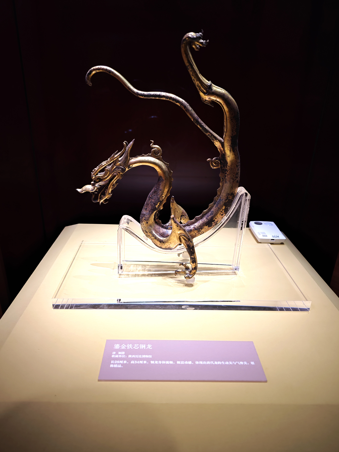 △鎏金铁芯铜龙,唐朝。(总台央视记者 彭汉明 拍摄)