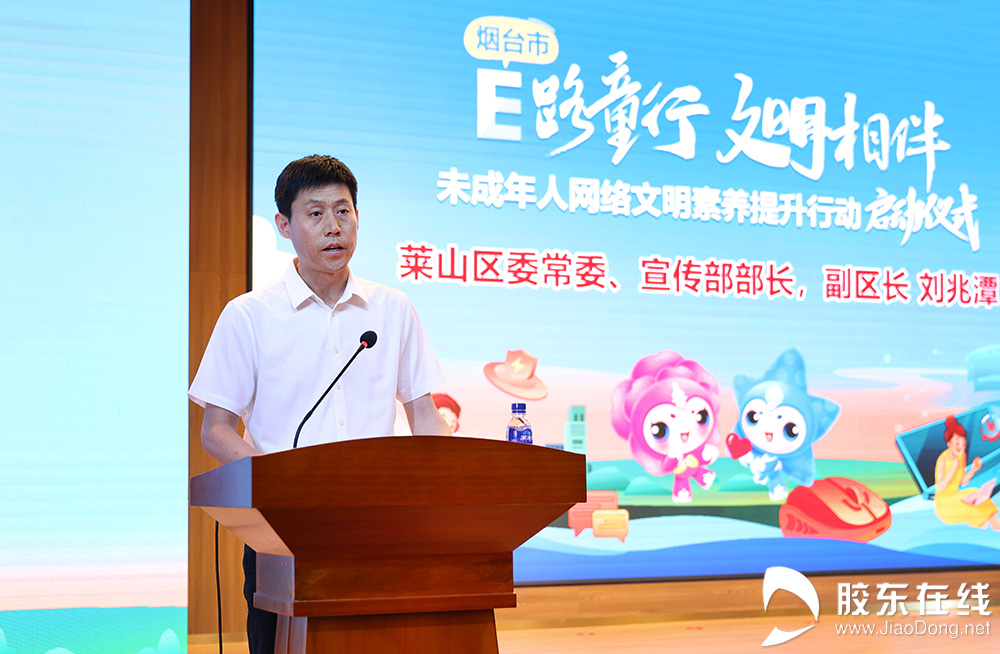 活动中,烟台市委宣传部三级调研员吕永华,市委教育工委专职副书记、市教育局党组成员王诗龙,共青团烟台市委兼职副书记艾青,莱山区委常委、宣传部部长、副区长刘兆潭,市委宣传部精神文明建设二科科长李洪义,市委网信办网络社会工作科科长张景亮,莱山区教育和体育局局长刘恩杰共同启动“E路童行文明相伴”未成年人网络文明素养提升行动。
