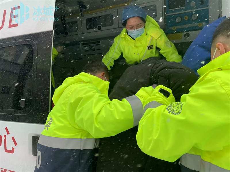 护士王安琪第一个跳下车去推车,随后医生李奕霖、担架员闫兆坤都跳下车去推车,一位穿着单衣下楼买东西的市民借了李赋翼的衣服也来帮助推车,随后又有路过的居民帮助,在大家同心协力的努力下,两分钟后,急救车终于驶出了深雪区,开到了患者在指令中说出的地点。