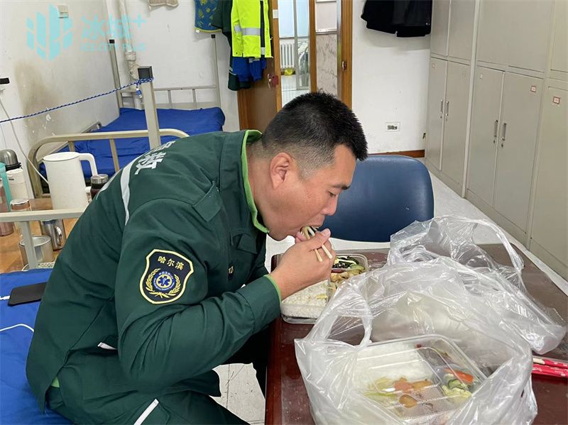 11时30分,车组回到了急救分中心,此时桌上早已经摆好了盒饭,分主心中任吴继楠催促大家快吃饭,因为盒饭已经送来半个小时了。而当车组人员刚刚将鞋里的雪倒出来,身上的雪扫干净的时候指令再次响起,道外十八道街有老人脑梗发作。