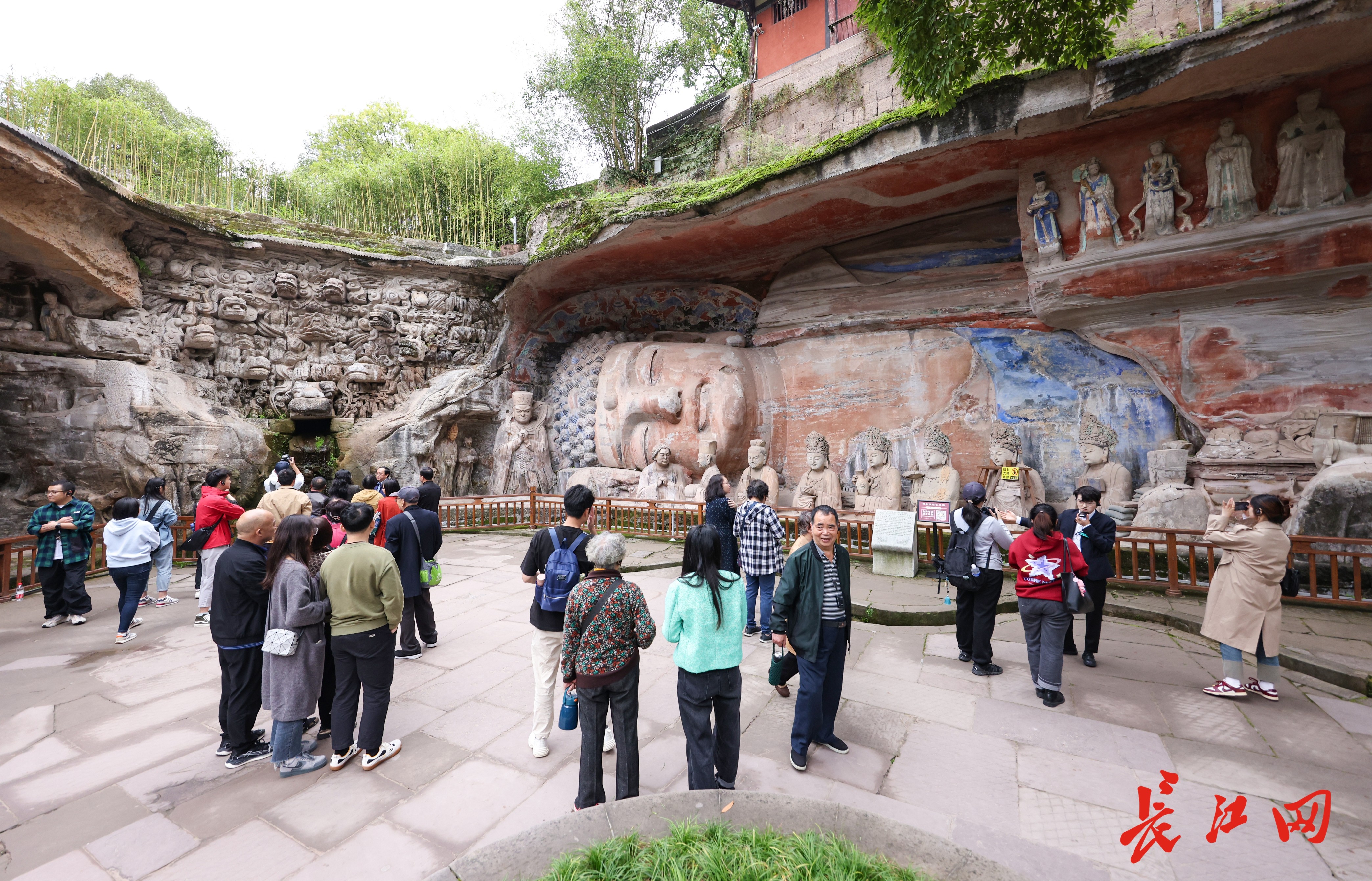 “将释迦出生和涅槃的场景置于一处引人深思,同时解决排水问题,还将佛教内容中国化了。”探访团员武振慧赞叹道,大足工匠的巧夺天工令人叹为观止。