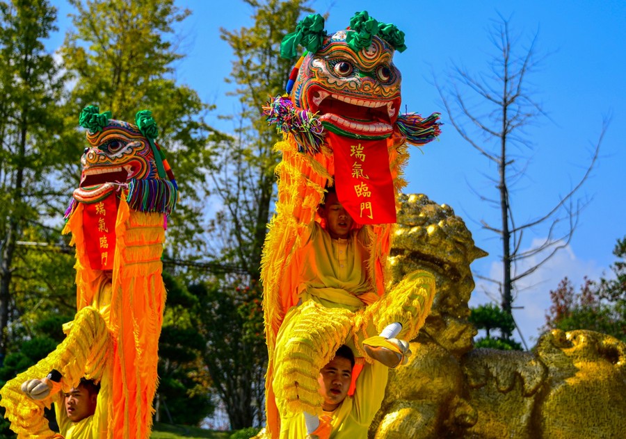 定南瑞狮表演。记者李喆 摄
