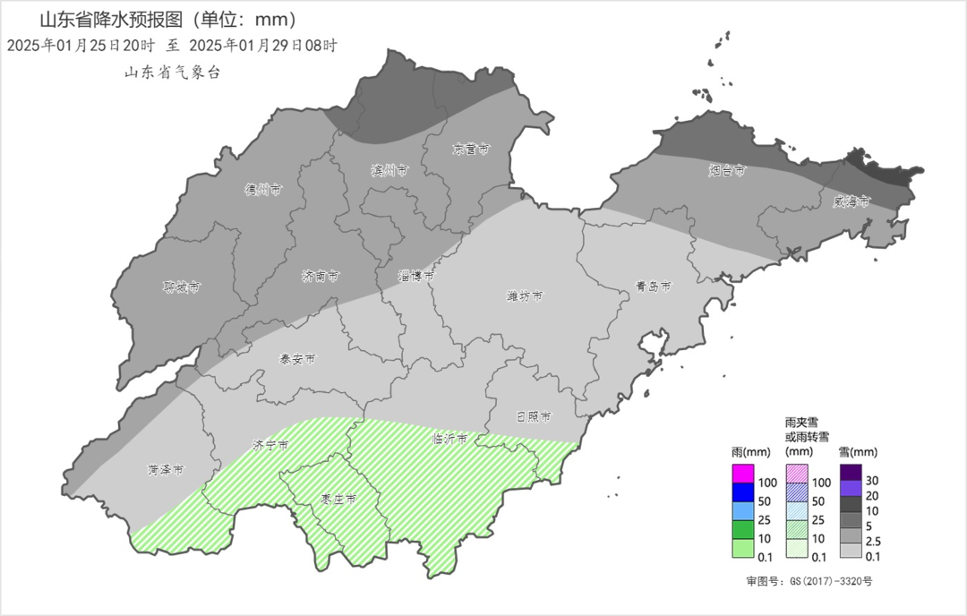 “此次雨雪过程主要从25日夜间开始,25日夜间至26日白天,省内降雪相态复杂,鲁西北地区主要以雪为主,鲁中、鲁南及沿海地区则会出现雨转雨夹雪转雪的相态转变。”山东省气象台首席预报员介绍。
