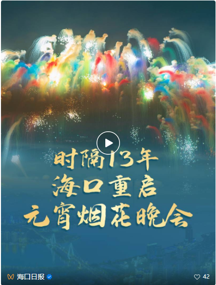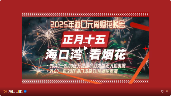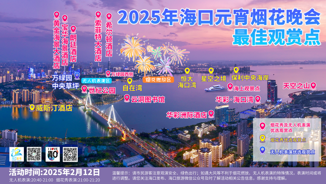2月12日晚2025年海口元宵烟花晚会将绚烂绽放