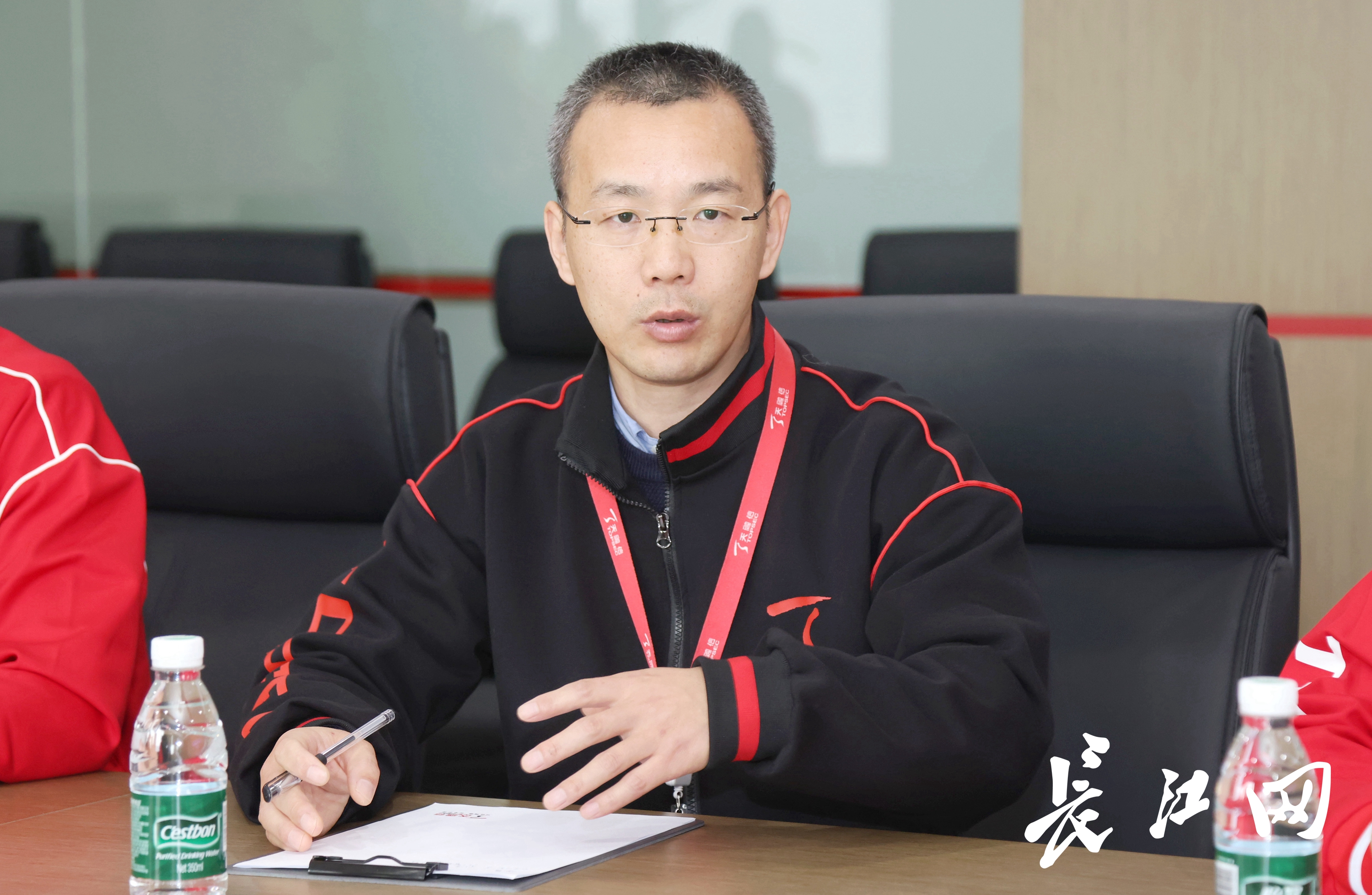 天融信科技集团副总裁、武汉研发中心总经理左世涛在座谈会上与实践团成员交流。王筝摄