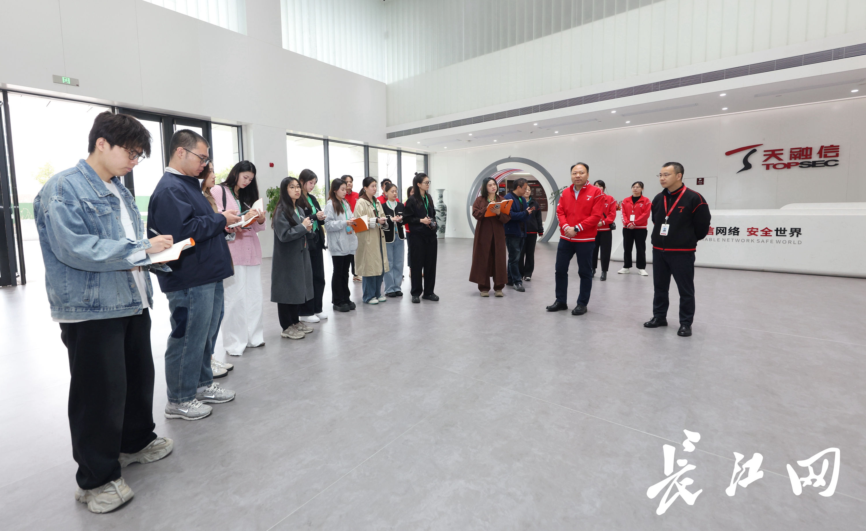 “青春华章·我们的回答”网络大思政课——2025全国大学生社会实践团走进天融信武汉研发中心。王筝摄