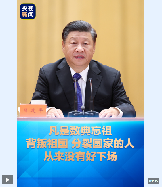 “凡是数典忘祖、背叛祖国、分裂国家的人,从来没有好下场。”