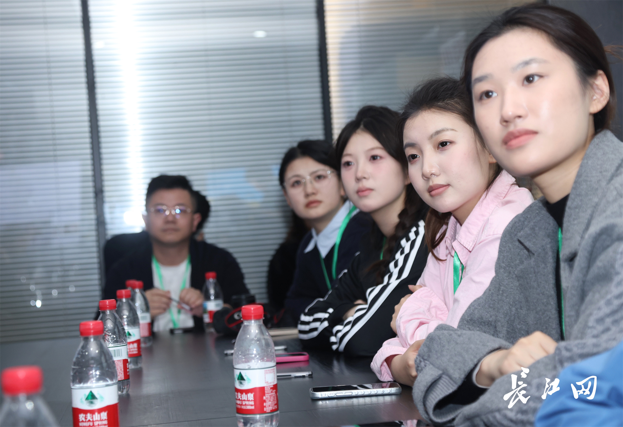 社会实践团成员聚精会神听两点十分动漫相关负责人介绍情况。王筝 摄