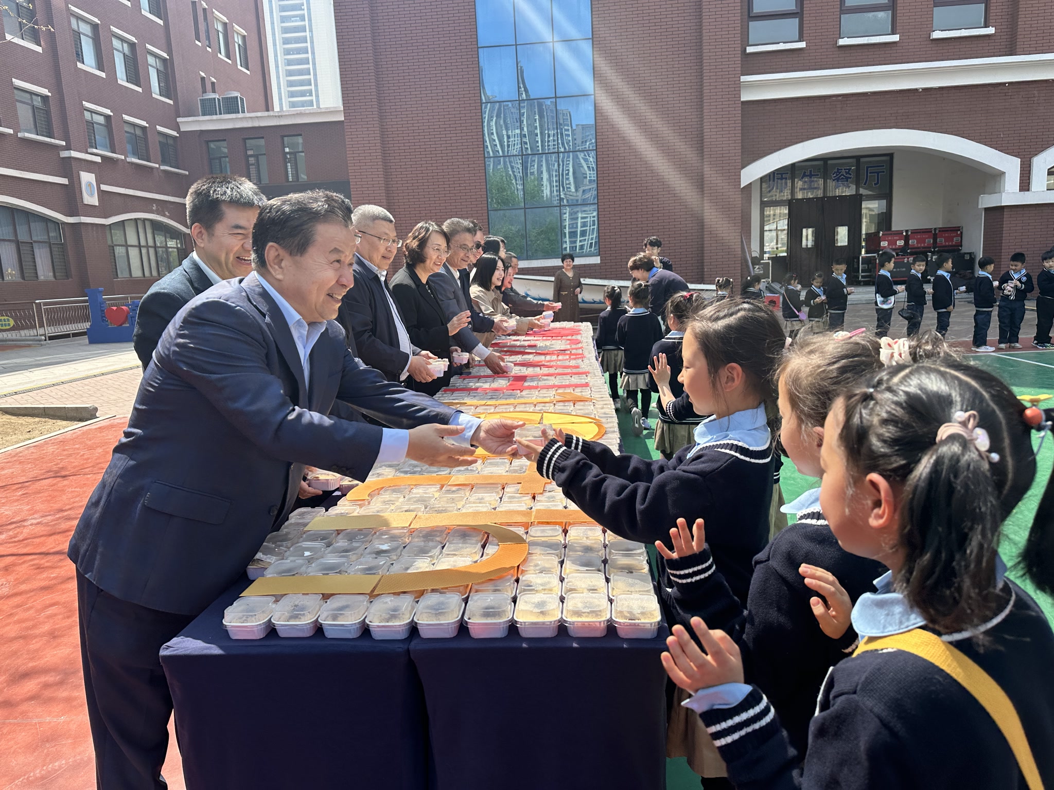 庆典迎来温情高潮!青岛银海集团党委书记、董事长辛华龙携教联体专家、校领导及优秀家长代表共吹生日蜡烛,许下对银海未来的美好期许。特别设计的蛋糕由学校餐厅匠心制作,既是甜蜜分享,更彰显高新银海“舌尖上的育人关怀”。