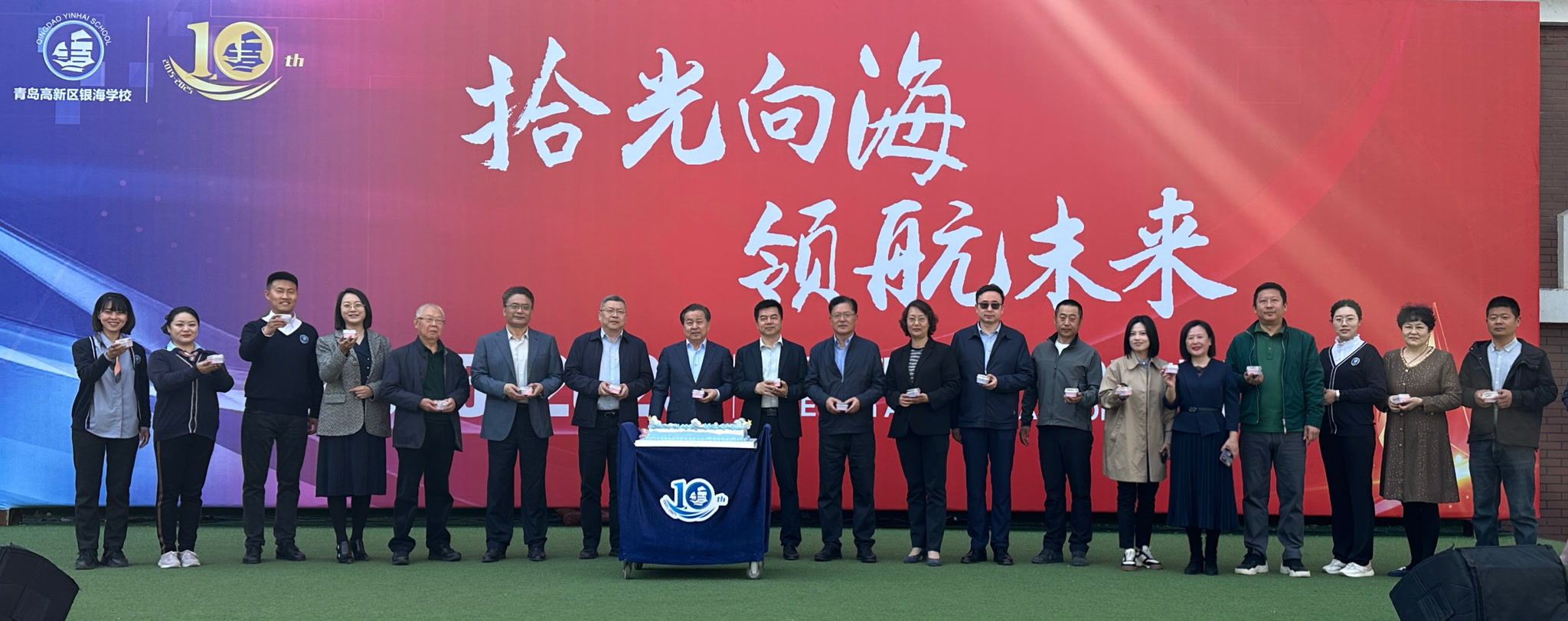 自然资源部第一海洋研究所副所长徐兴永,中国科学院海洋所所务委员刘洋,中国海洋大学工会副主席李红涛,原中国水产科学研究院黄海水产研究所副所长、现山东省海洋经济研究会会长辛福言,全国海洋教育研究联盟理事长、全国海洋教育推广中心主任、中国海洋大学教授马勇,丰庆路社区党委书记方菁,青岛银海集团党委书记、董事长辛华龙,青岛银海集团财务顾问丁国岩,青岛银海集团常务副总于川,青岛银海教育集团总校长沈婷,青岛高新区银海学校校长王艳冰,青岛高新区银海学校党支部书记梁林,青岛高新区银海学校优秀家委会代表赵乃瑜、王超等领导嘉宾共聚一堂,共同见证青岛银海集团成立32周年暨青岛高新区银海学校建校10周年庆典盛况。