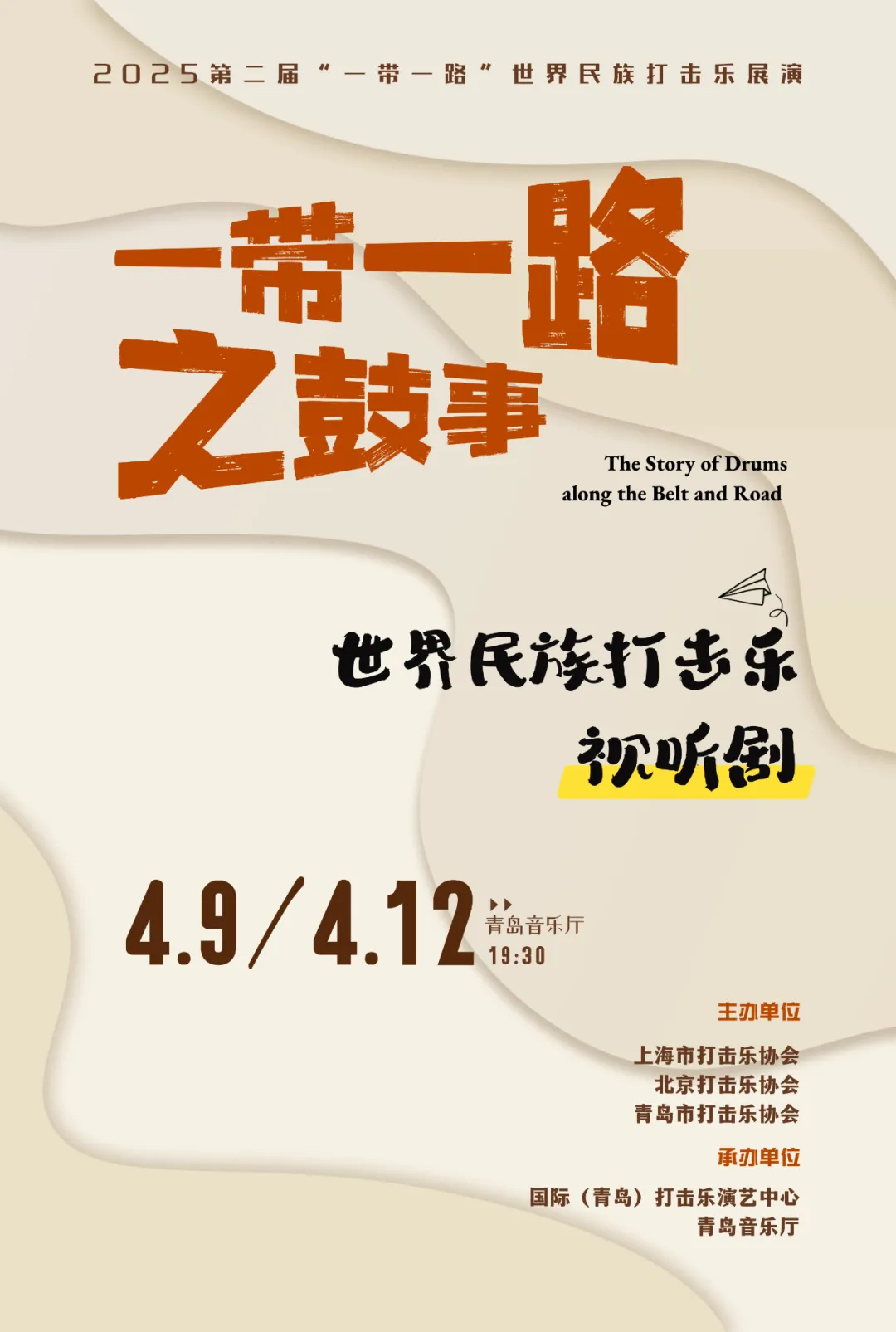 青岛新闻网4月10日讯(记者 张力伟)日前,第二届“一带一路”世界民族打击乐展演在国际(青岛)打击乐演艺中拉开帷幕,本届活动以“丝路鼓韵·民心相通”为主题,聚焦世界民族打击乐的艺术魅力,深化“一带一路”沿线国家文化交流。此次展演由上海市打击乐协会、北京打击乐协会、青岛市打击乐协会主办,国际(青岛)打击乐演艺中心承办。