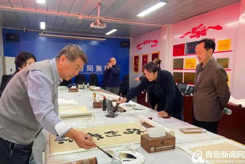 活动现场,殷庆伟、程方厚、单继宏、郑佩和、王兆祥、筐乃智、吕文元、于一保、薜俊家9位岛城知名书画家齐聚一堂,以笔为媒,以墨传情,凭借深厚的艺术功底,展现出传统文化的磅礴气势。一幅幅饱含深情的书画作品跃然纸上,引得连连赞叹。