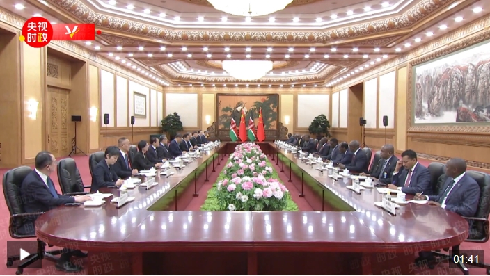 4月24日上午,国家主席习近平在北京人民大会堂同来华进行国事访问的肯尼亚总统鲁托举行会谈。两国元首一致同意将双边关系定位提升至新时代中肯命运共同体。