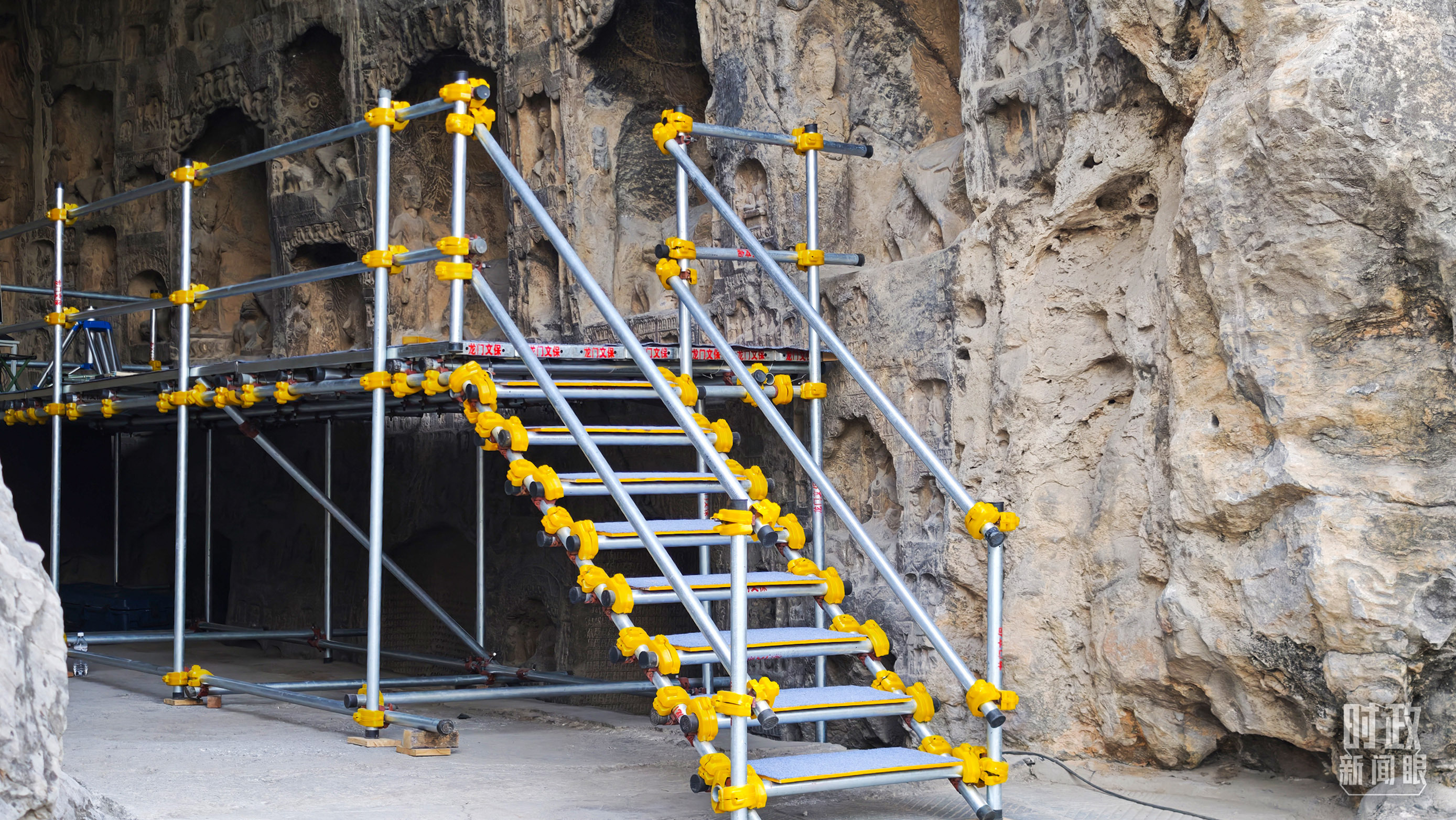 △龙门石窟古阳洞文物修护现场。(总台央广记者 潘毅 拍摄)