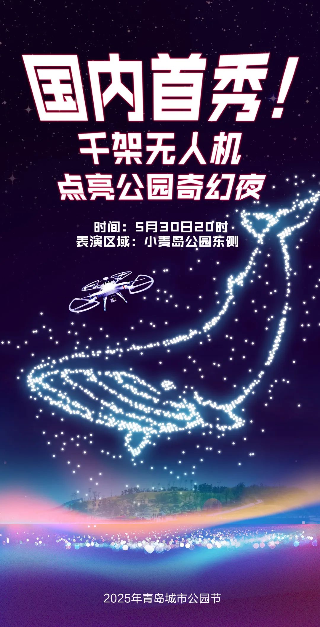 当科技艺术与城市生态碰撞,当青春活力与城市文脉交融,一场突破想象的星空嘉年华即将在青岛上演。作为2025青岛城市公园节的重磅活动,国内首个公园无人机星空嘉年华将于5月30日登陆小麦岛公园,以“美好·向园而行”为主题,用1000架无人机编织“千园之城”的生态画卷,开启一场“陆空交响·千园共耀”的奇幻盛宴。