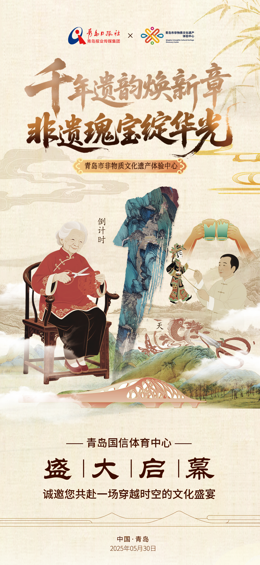 穿越千年匠心,邂逅非遗之美!2025年5月30日,由青岛日报社精心打造的青岛市非物质文化遗产体验中心将在国信体育中心璀璨启幕!