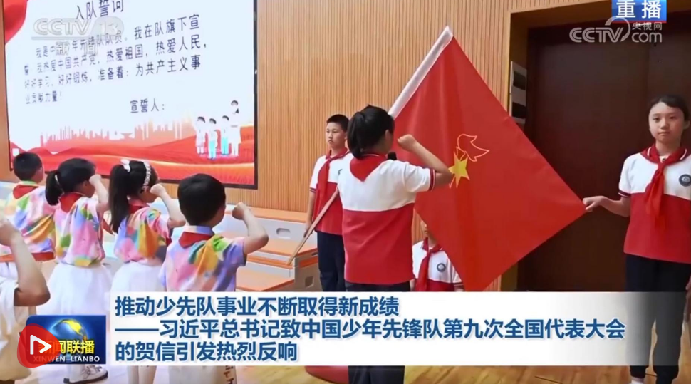 央视网消息(新闻联播):习近平总书记在致中国少年先锋队第九次全国代表大会的贺信中强调,要聚焦培育共产主义接班人的根本任务,着眼于培养中国特色社会主义事业合格建设者,教育引领广大少先队员争当爱党爱国、勤奋好学、全面发展的新时代好少年。总书记的殷切寄语在广大少先队员、少先队辅导员、少先队工作者中引发热烈反响。