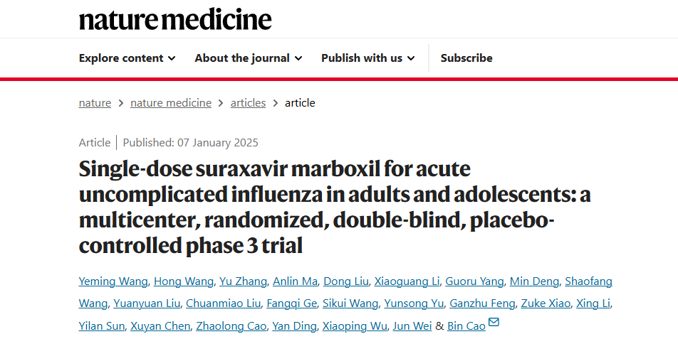 2025年1月,玛舒拉沙韦片的Ⅲ期临床研究成果登上国际顶级医学期刊《Nature Medicine》。