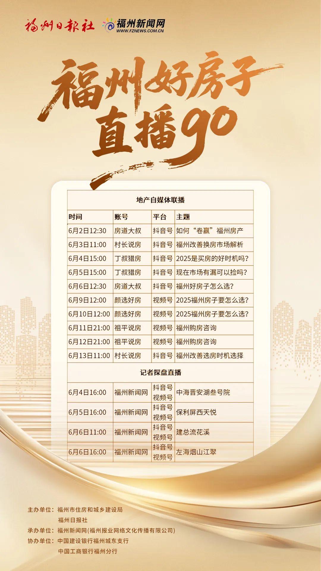 6月2日起还有更多精彩!“福州好房子直播GO”将开播记者、地产大V、置业顾问将深入各片区,通过线上直播的方式带领市民线上“实地探盘”,解锁好房新体验!