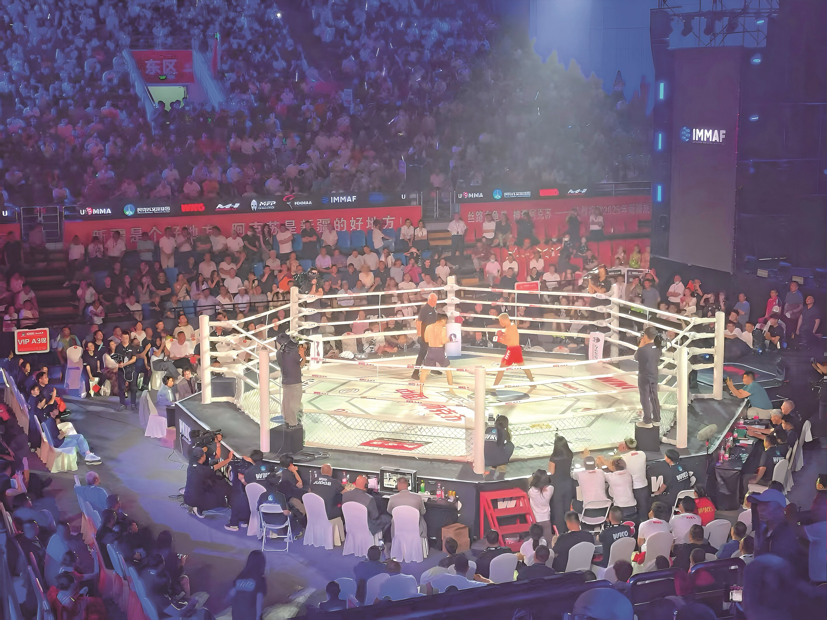 比赛哨声响起,八角笼内的选手瞬间进入战斗状态。选手们的每一次出拳、踢腿和抱摔,都引得观众席上爆发出震耳欲聋的欢呼与呐喊声。