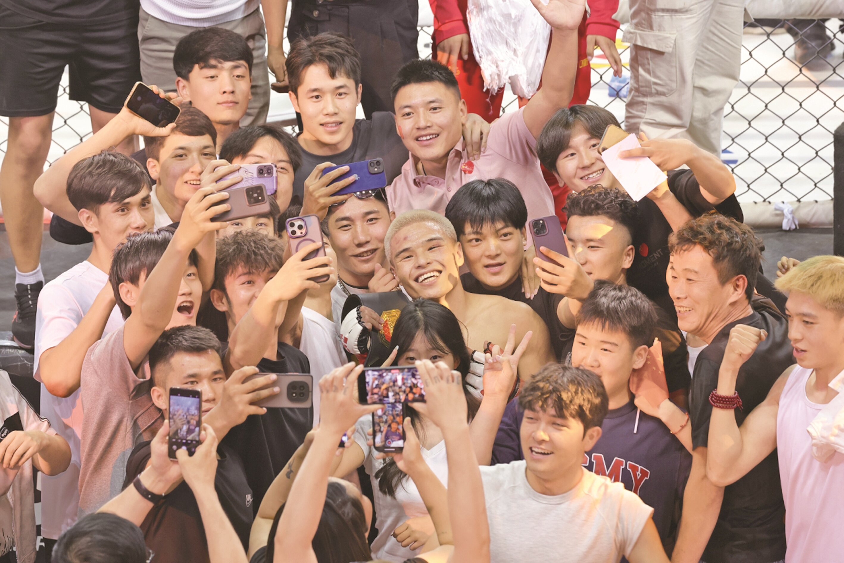 粉丝与中国选手热格真合影留念。记者 孙鹤凌 摄