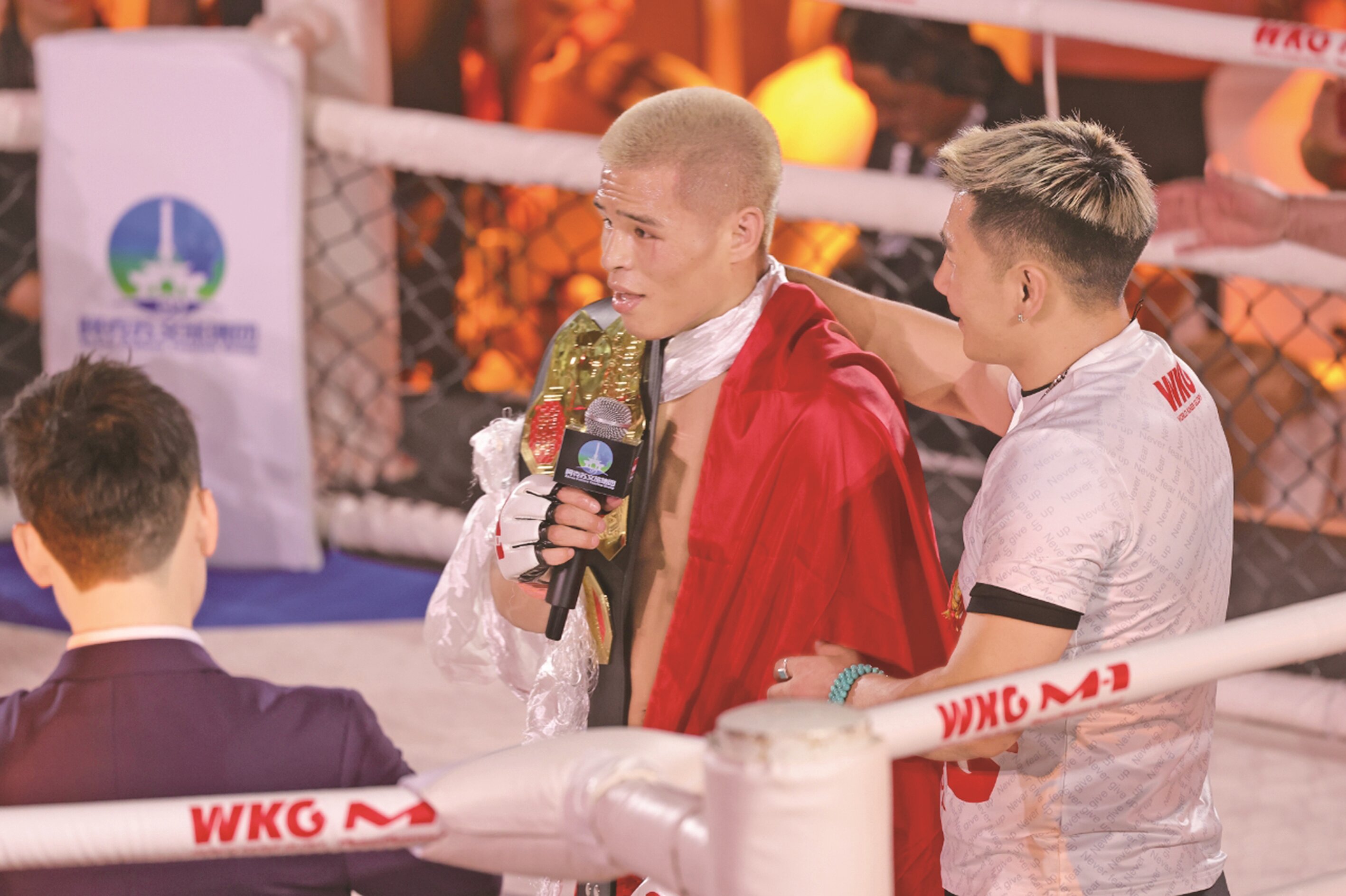 当晚的焦点之战,无疑是男子66公斤级冠军金腰带争夺战。中国悍将热格真对阵日本名将前園渓。比赛中,两名参赛选手互不相让,每一个回合都扣人心弦。最终,热格真成功防住对手的进攻,并抓住时机以一记精彩的飞膝击倒前園渓,赢得WKG历史上首条66公斤级别冠军金腰带。