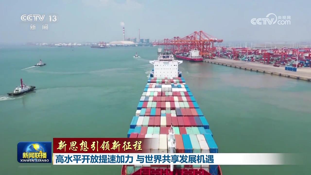 央视网消息(新闻联播):习近平总书记强调,中国将继续推动高质量发展,扩大高水平对外开放,同各国分享发展机遇,为地区乃至世界经济带来更多稳定性和确定性。今年以来,我国依托超大规模市场优势,在扩大国际合作中提升开放能力,不断拓展经济发展新空间,与世界共享发展机遇。