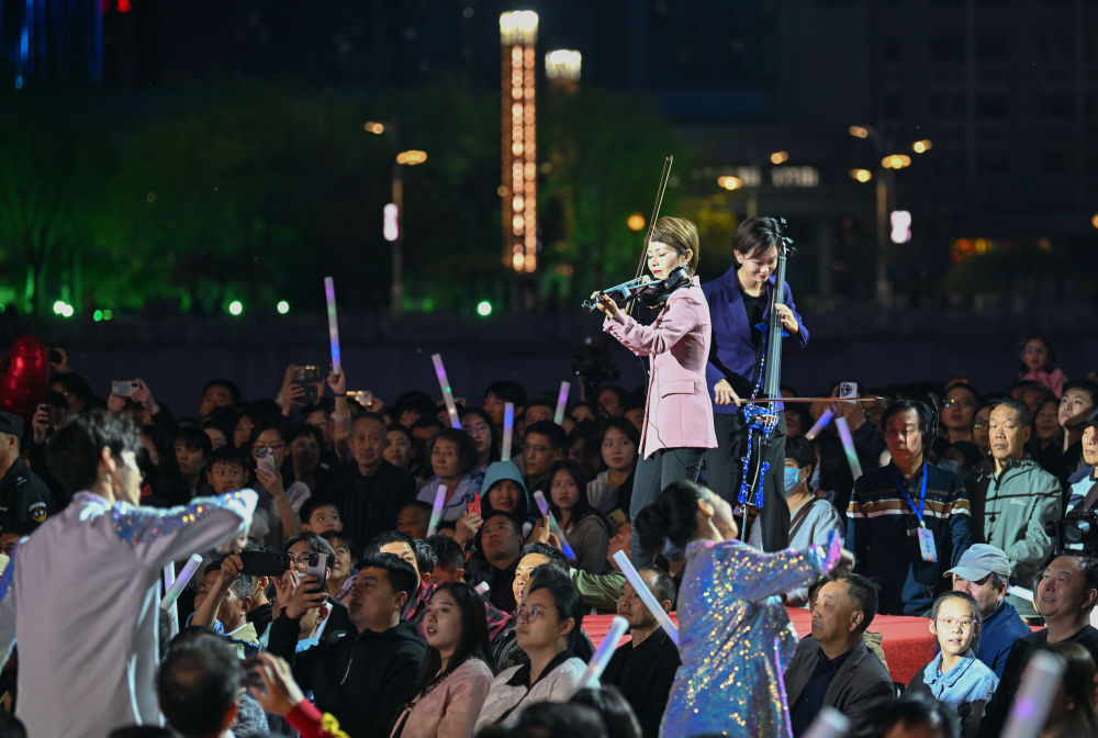 2025年4月19日,天津交响乐团的乐手在天津津湾广场亲水平台为市民游客演出。