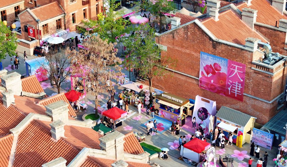 近年来,天津市根据五大道历史文化街区每处建筑的特点,“一楼一策”,引入新产品、新场景、新业态,让老建筑“活”起来。目前,包括庆王府、先农大院、樘院在内的200余幢历史风貌建筑经整理或修复后,得到了合理利用。这是2024年4月6日拍摄的先农大院(无人机照片)。