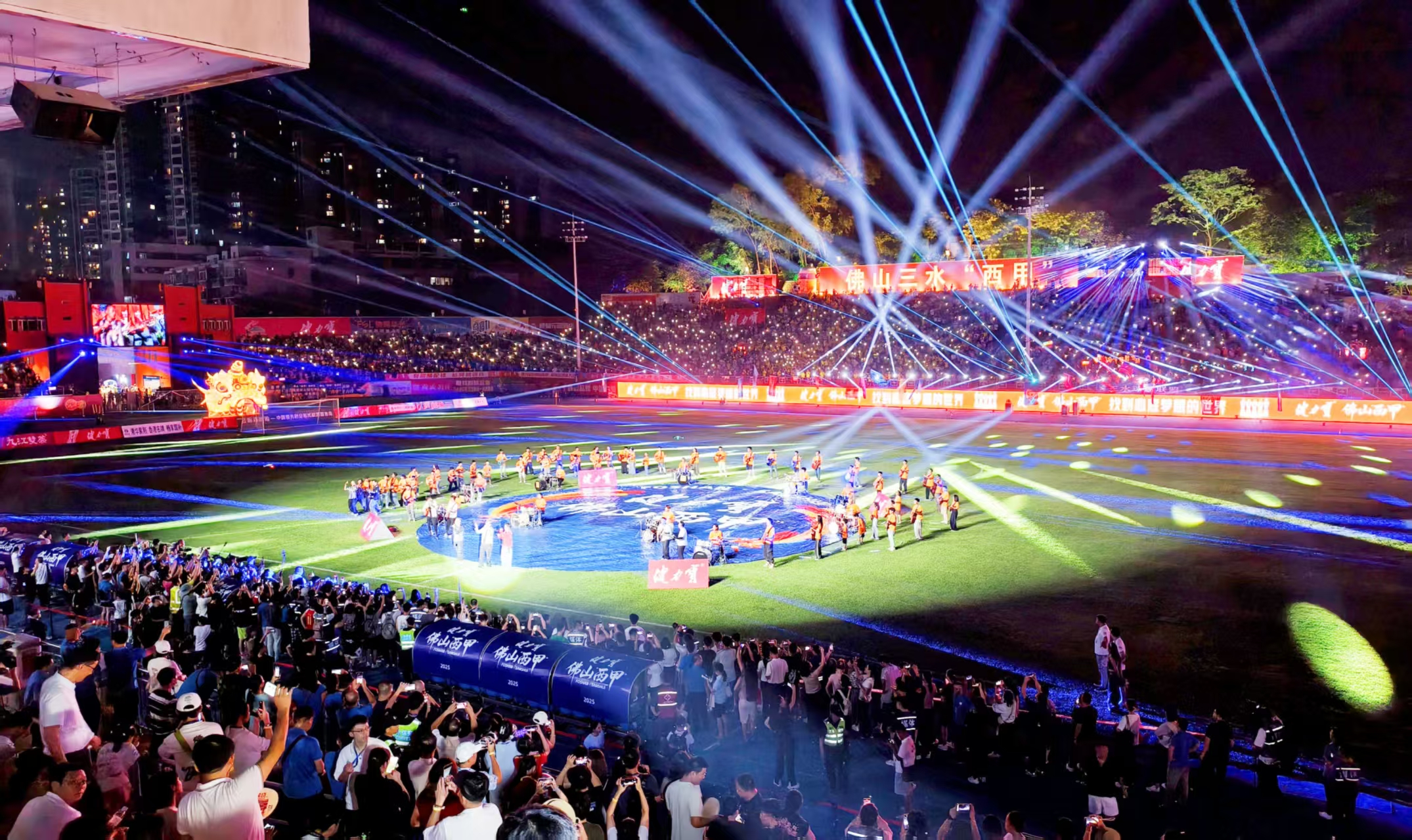 7月4日晚,佛山市三水区云秀山体育场在夜幕中璀璨生辉,佛山市第十一届运动会与健力宝杯第十九届佛山“西甲”足球联赛在此同步拉开帷幕。这场青少年竞技体育与群众体育的“大联欢”,以“双赛同开”的创新形式,成为佛山体育史上的独特风景。