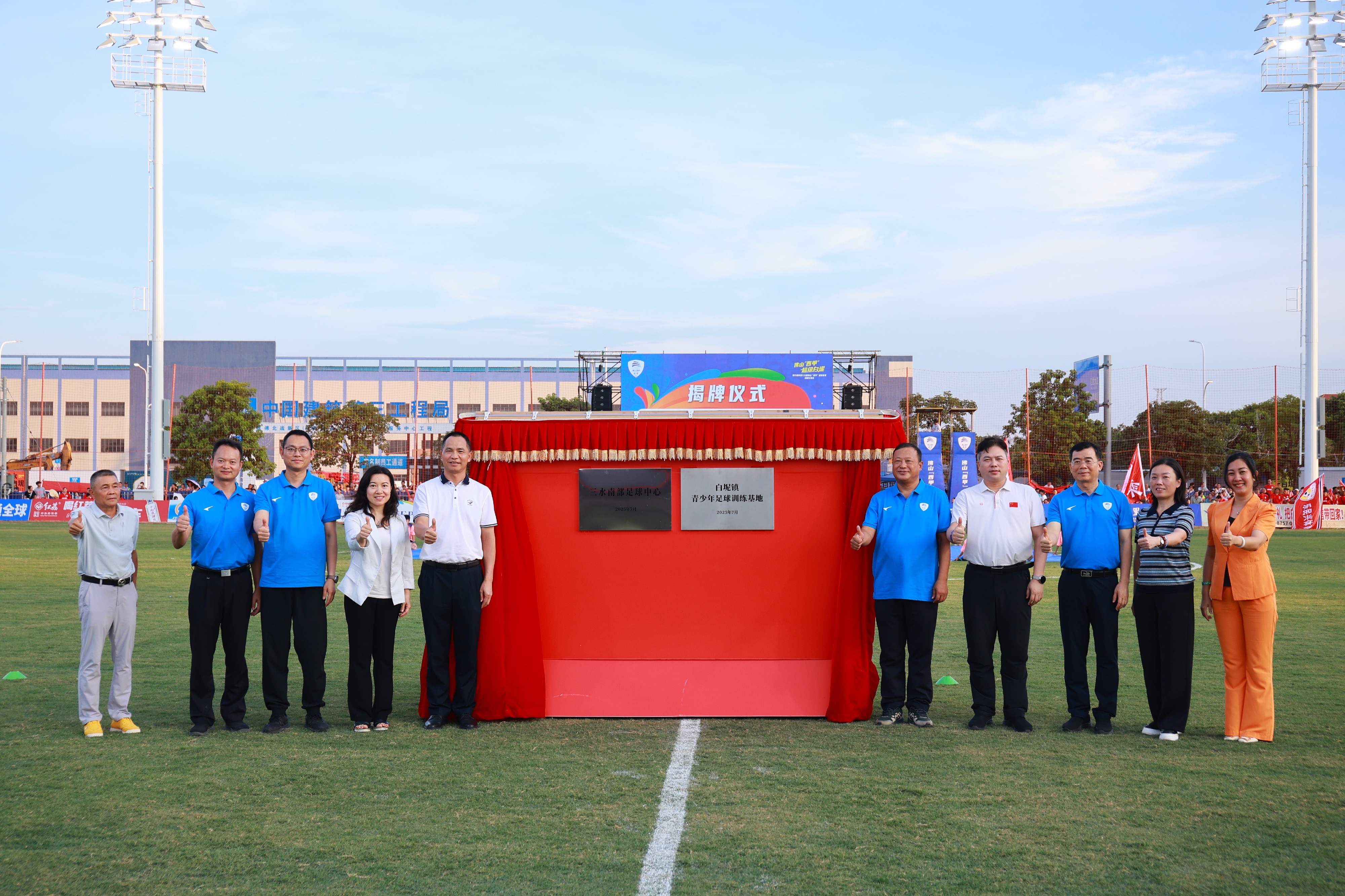 暮色浸染白坭时,开幕式现场已人潮汹涌。“三水南部足球中心”“白坭镇青少年足球训练基地”揭牌,标志着白坭足球青训体系迈上新台阶,为培养本土足球人才奠定坚实基础。