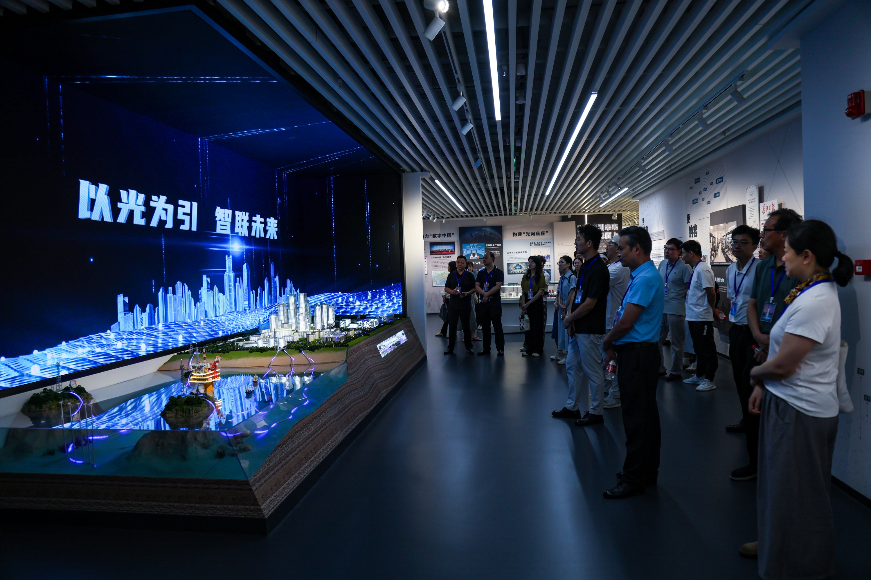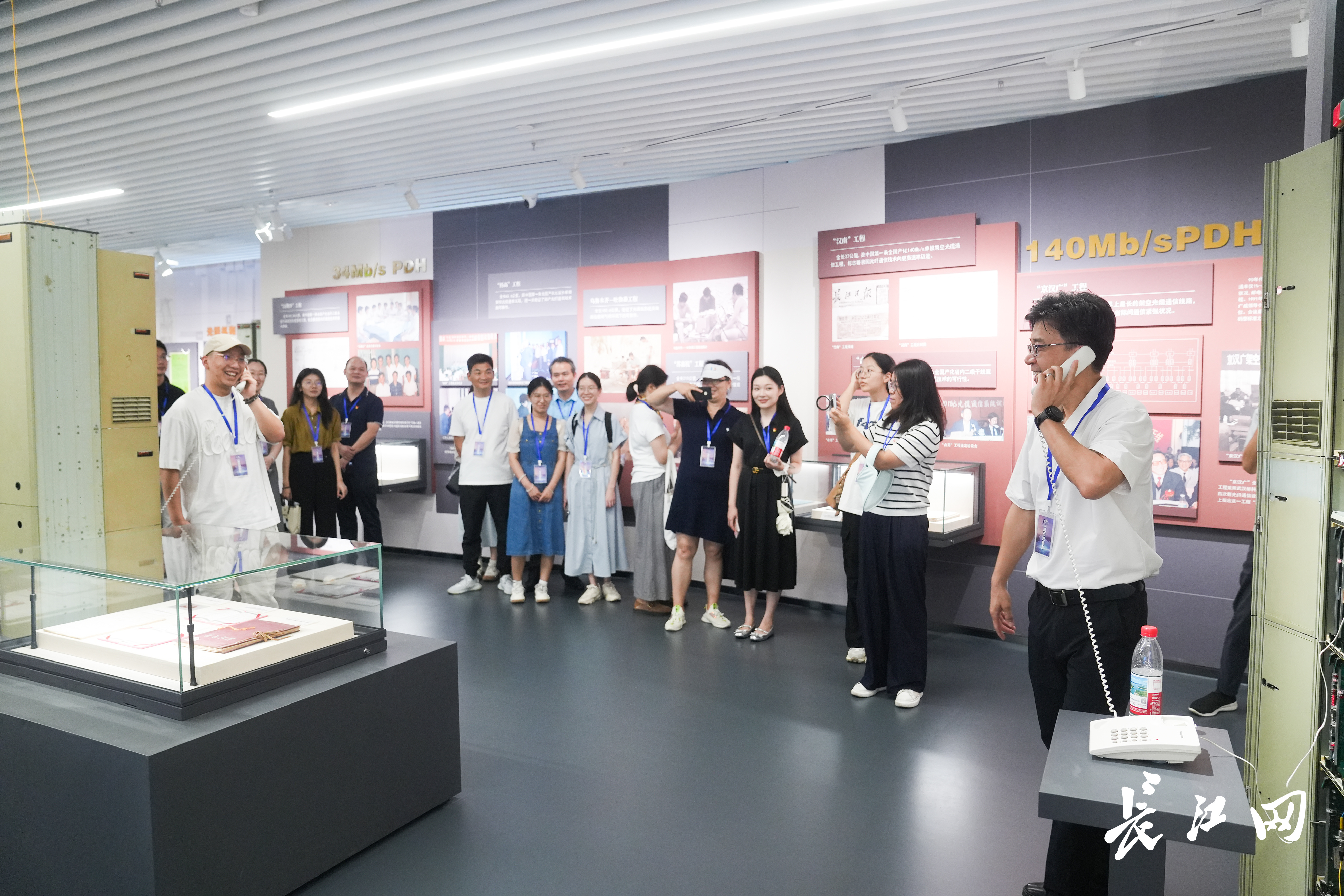 观察团成员在中国信科光通信陈列馆参观