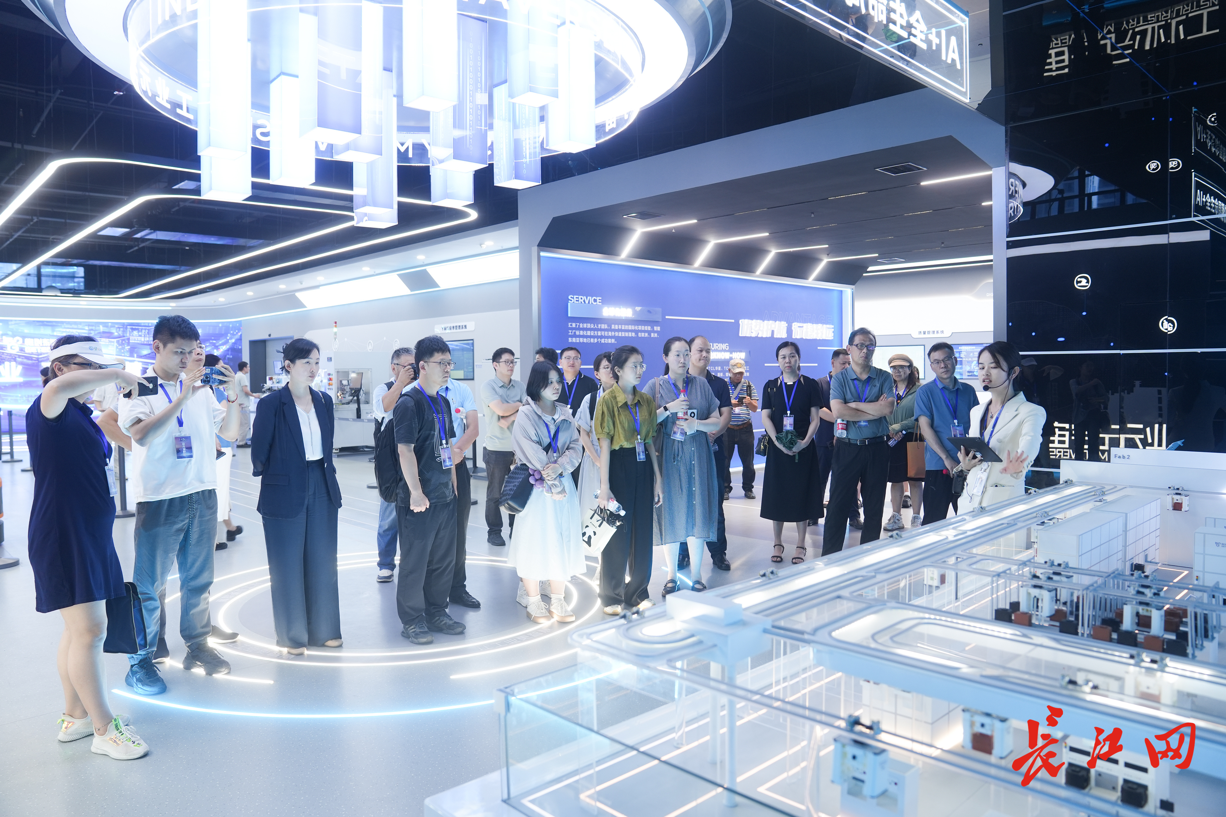 在格创东智工业智能创新基地(武汉),观察团成员正在参观“AI+全生命周期仿真产线”