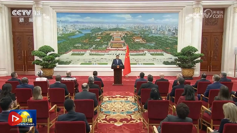仪式结束后,习近平在北京厅对使节们发表讲话。