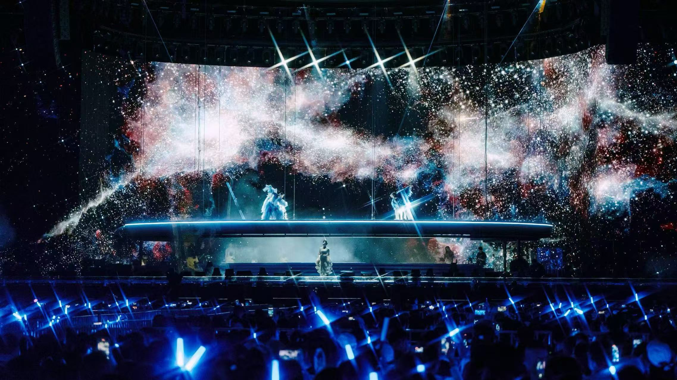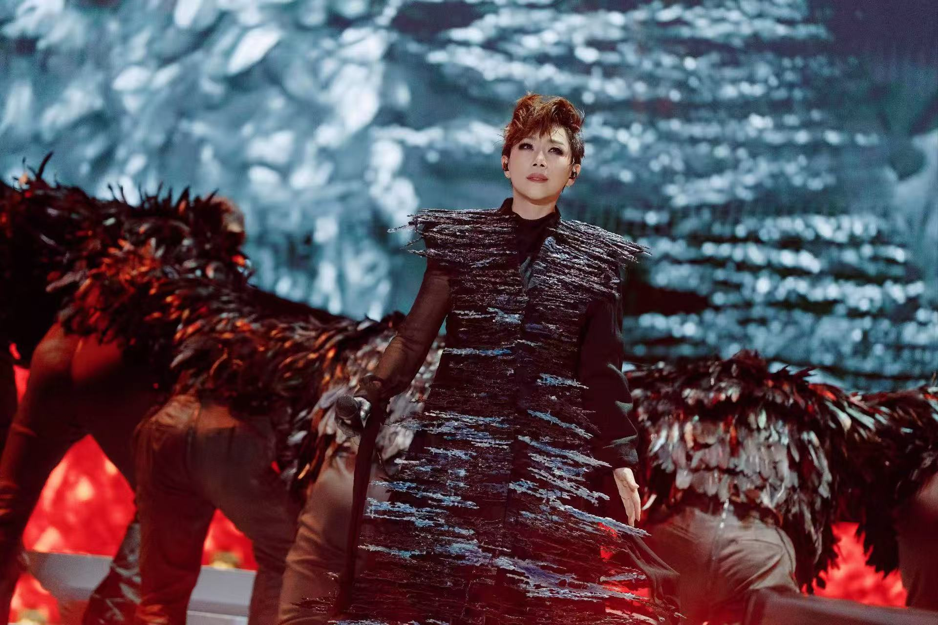 整场演唱会的舞台设计以“时空交错”为概念,流动的光影粒子随音乐解构又重组,仿佛带领观众穿梭于林忆莲的音乐生涯。从早期粤语经典到国语巅峰,再到实验性强的《盖亚》时期,每一段音乐都像一枚“时间胶囊”,唤醒不同年代的记忆。