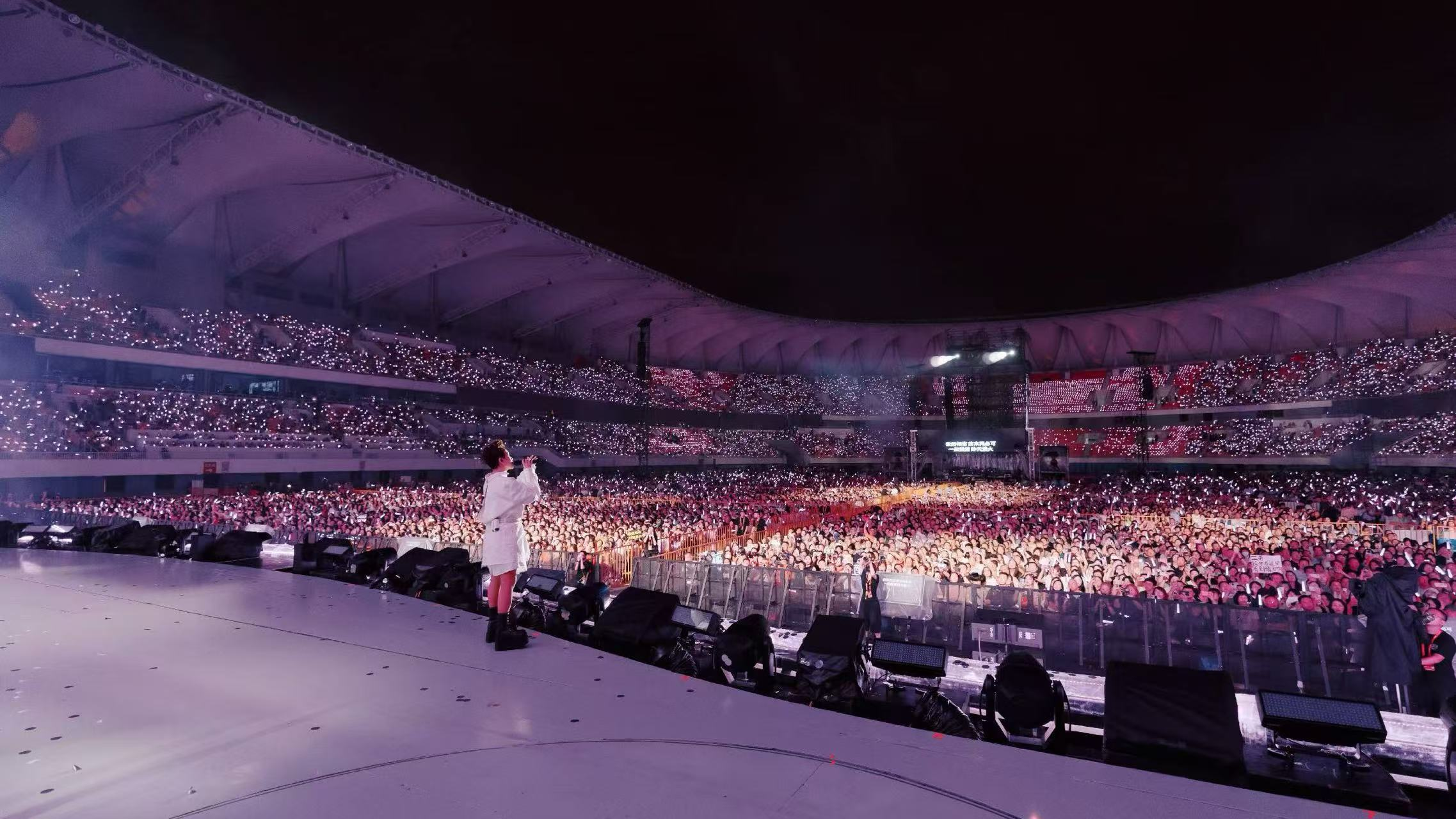 当《至少还有你》的前奏响起,全场瞬间变成巨型KTV,数万人齐声合唱,场面震撼。而《伤痕》《当爱已成往事》等金曲更是引发回忆杀,许多观众眼含泪光,跟着旋律轻轻摇摆。林忆莲虽未多言,但她的歌声已足够让所有人沉浸在这场跨越时空的音乐之旅中。