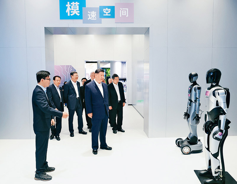 2025年4月29日,中共中央总书记、国家主席、中央军委主席习近平在上海考察。这是习近平在位于徐汇区的上海“模速空间”大模型创新生态社区,听取相关技术研发和企业生产经营介绍。新华社记者 王晔/摄