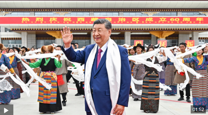 习近平率中央代表团抵达拉萨出席西藏自治区成立60周年庆祝活动