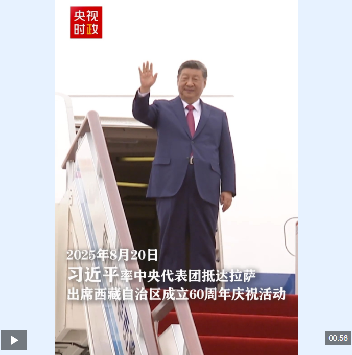 中共中央总书记、国家主席、中央军委主席习近平率中央代表团20日中午乘专机抵达拉萨,出席西藏自治区成立60周年庆祝活动。