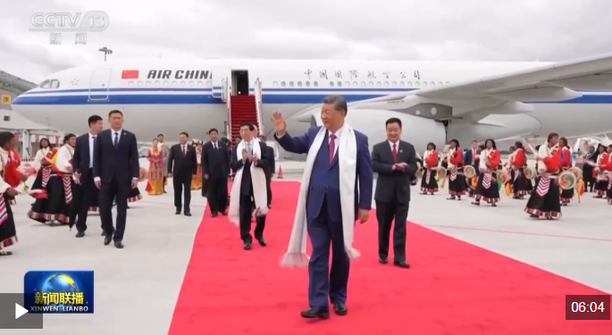 △视频:习近平率中央代表团抵达拉萨出席西藏自治区成立60周年庆祝活动