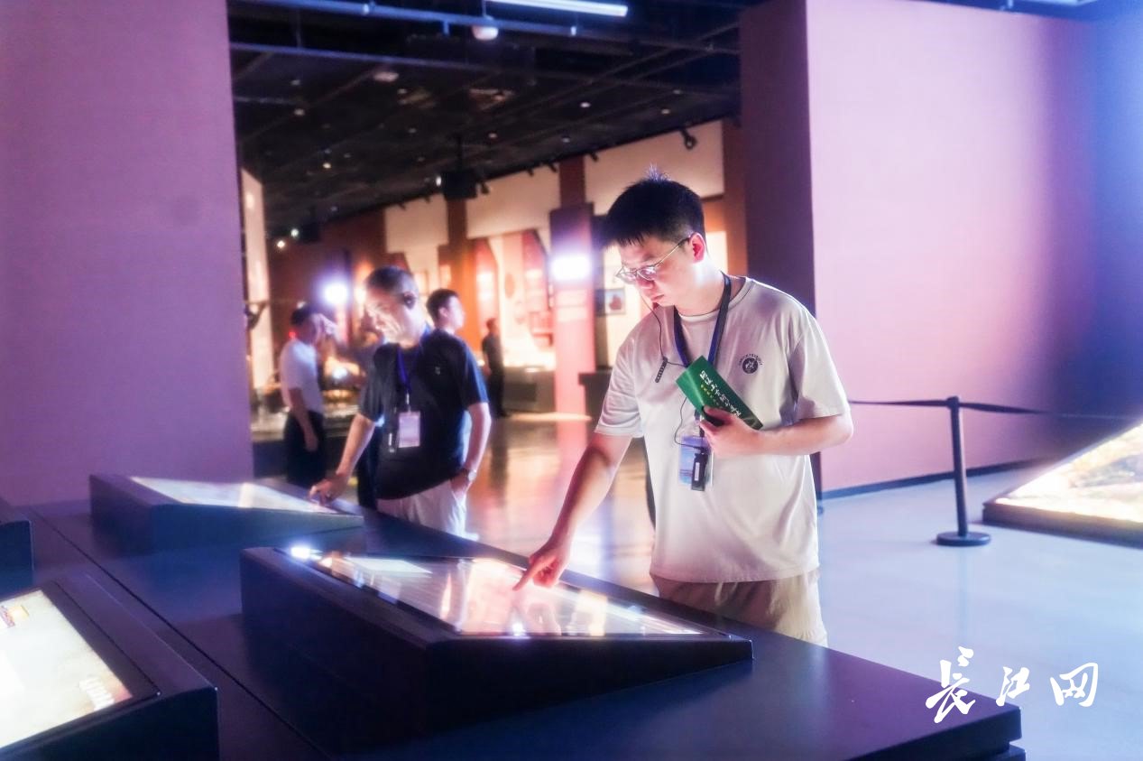 8月19日,全国新闻网媒总编辑在黄石铜绿山古铜矿遗址博物馆通过多媒体设备,了解古代铜矿的开采和冶炼技术。记者 彭年 摄