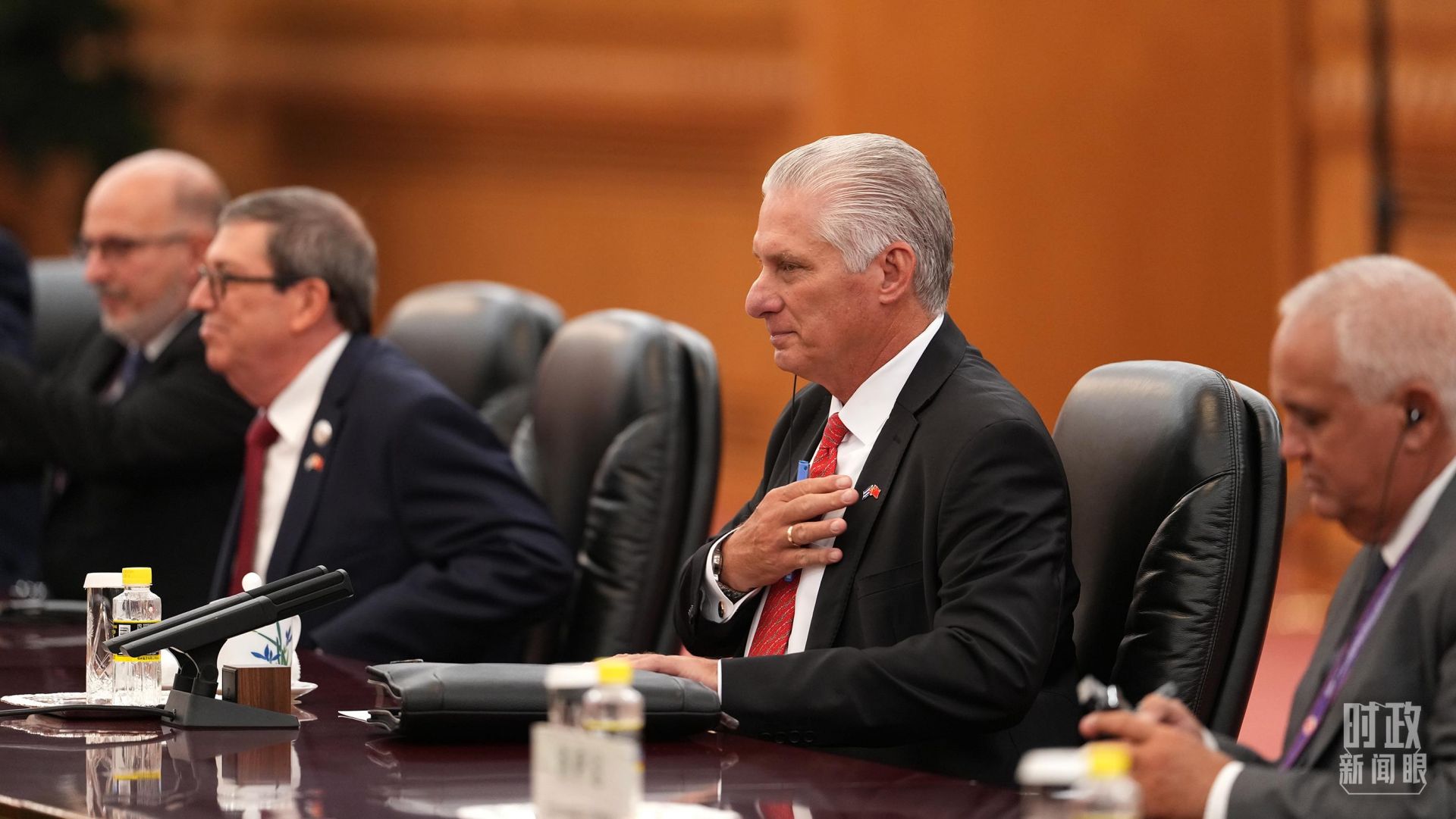 △古巴共产党中央委员会第一书记、古巴国家主席迪亚斯-卡内尔在会见中。(总台记者 李晋 拍摄)