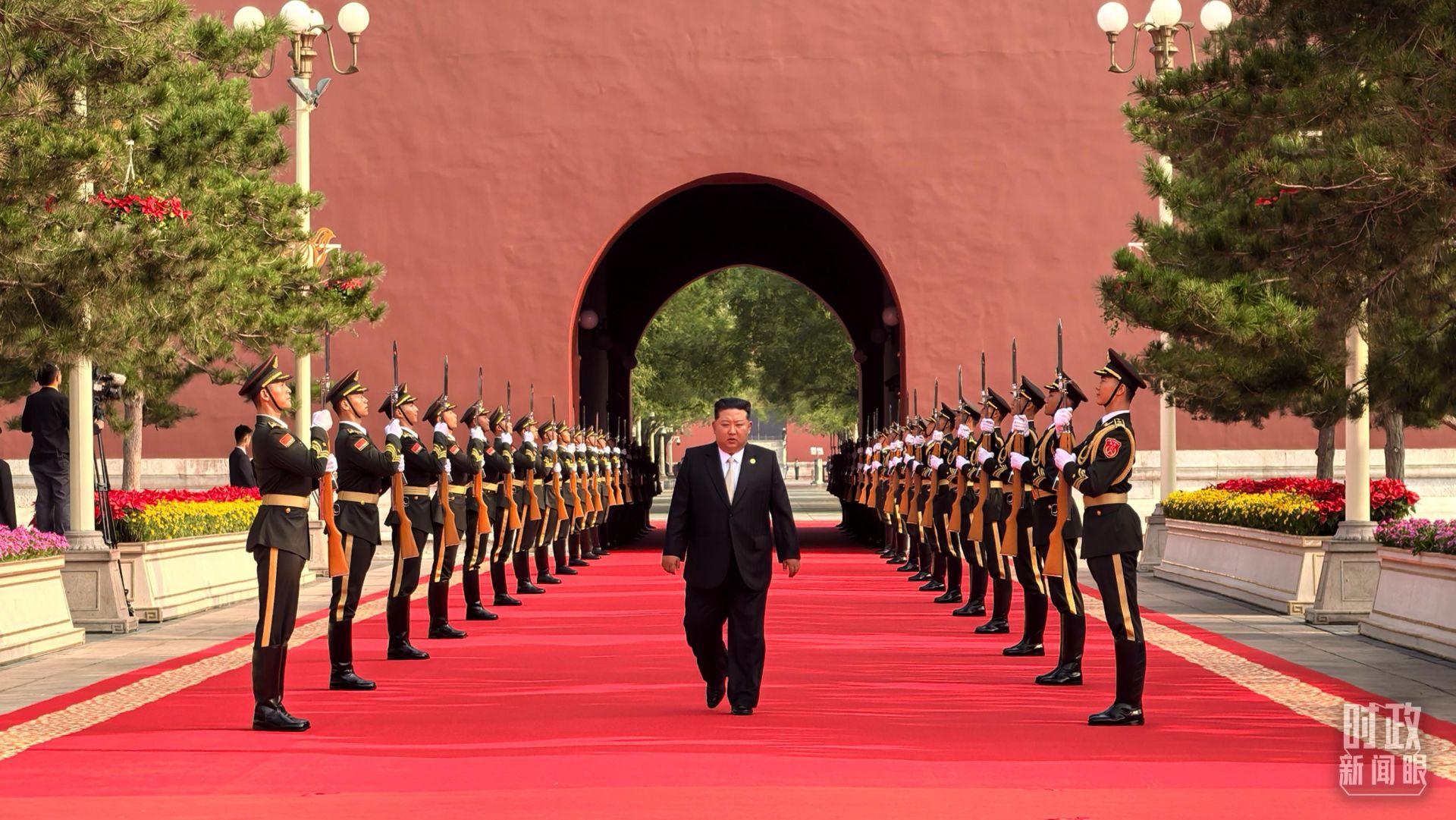 △9月3日上午,金正恩抵达端门外广场参加迎宾仪式。(总台央视记者 李增仁 拍摄)